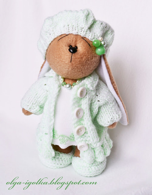 ОтветитьУдалитьочень приятный цвет вязаных вещей. и зайка такая весенняя и нежная