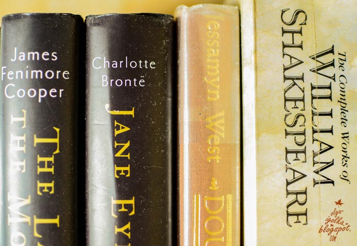 ОтветитьУдалитьНа русском я прочитала еще в школе) А это уголок книжной полки, где у меня стоят подлинники - Фенимор Купер, Шарлотта Бронте, Джессамин Вест, Шекспир и другие, которые не поместились.