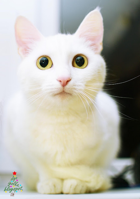 УдалитьКрасивая киса!У меня тоже была белая кошка,только глаза у неё были разного цвета:один жёлтый,другой голубой.Она была наполовину ангорка.На даче пропала...12 лет назад.Я её очень любила и до сих пор помню...