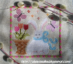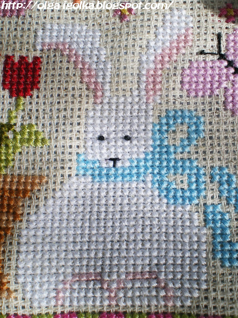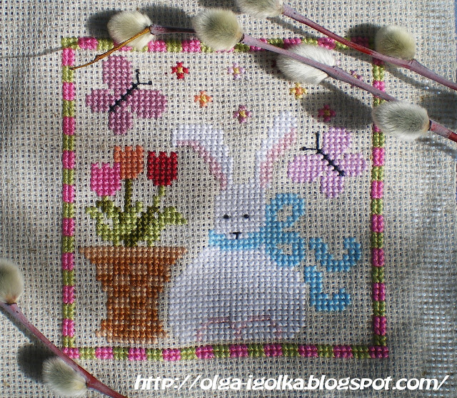 Here in Cheboksary the spring is gloom: black snow, muddy puddles, grey sky and drizzle... (( No sun, no birdcalls, no anything joyful... (( But I stitched a spring bunny by "Waxing Moon Designs" :)