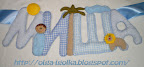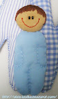 Не очередной мишка, а Миша, Михаил. Хотела у меня моя очень хорошая знакомая купить мишек для трех новорожденных мальчиков. "Зачем им мишки?! - сказала я. - Давай, я лучше сошью их имена из мягких букв!" Идею я увидела буквально накануне в блоге Anita Catita (замечательный блог, он мне даже потом во сне снился :). Сегодня покажу Мишу.