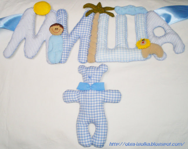 Misha is a Russian male name. One of my very good acquaintances wanted to buy my teddy bears for three newborn boys. "What do they need the teddy bears for? - I said. - I'd better make their names of soft sewn letters!" The idea is from Anita Catita blog (a very good one!) Today I'm showing Misha letters.