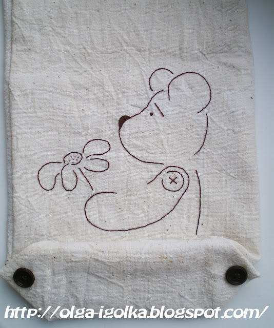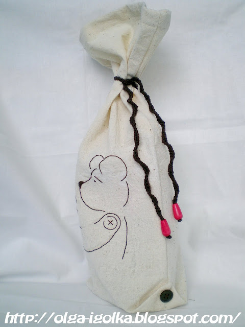 Очень красивый мешочек, простой и в тоже время "теплый" и "домашний". Интересный вышитый профиль)