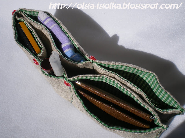 I made the bag for myself, but then I considered and decided to sell it. Now (from time to time between teddy bear work) I'm sewing a new bag, probably for myself...