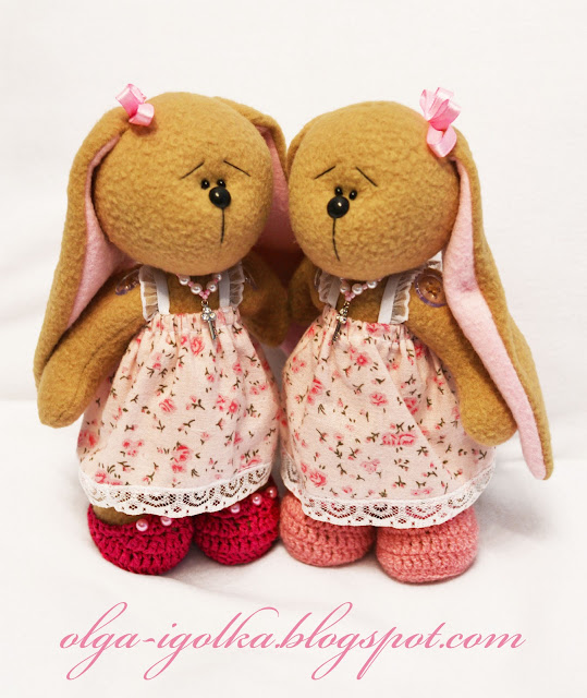 The bunnies are made-to-order for two lady-friends, big girls already) Tusya and Tasha are short forms of their name - Natasha.