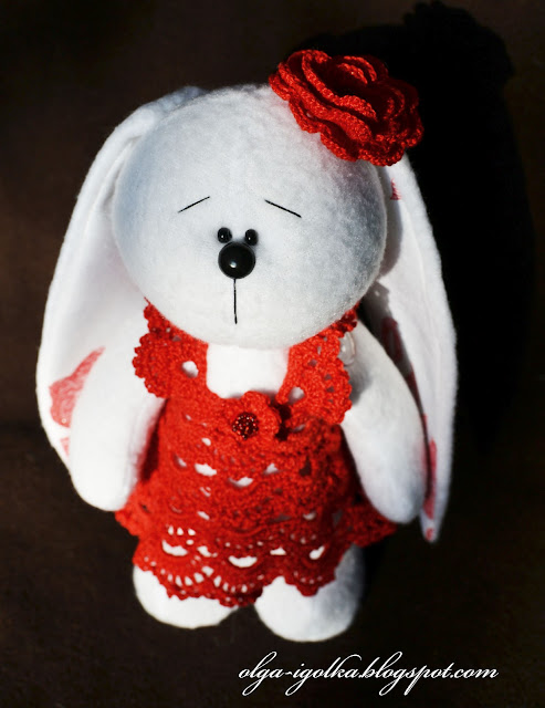 УдалитьОлечка, какие же у тебя все игрушки милые и трогательные! Но особенно всегда любуюсь их одежками. Так красиво и аккуратно все сшито-связано! Супер!