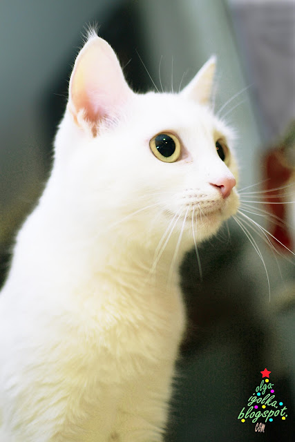 УдалитьКрасивая киса!У меня тоже была белая кошка,только глаза у неё были разного цвета:один жёлтый,другой голубой.Она была наполовину ангорка.На даче пропала...12 лет назад.Я её очень любила и до сих пор помню...