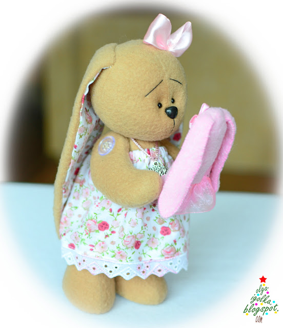 Vera the Bunny is pink all over. She loves cotton-candy and her dolly Lyulya. When it's fresh, she puts on a jacket and a personal barret.