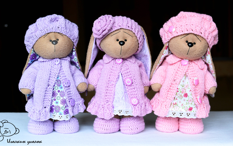 ОтветитьУдалитьСкажу тебе честно, у их мамы большая семья, трое взрослых сыновей и свой большой дом, поэтому она заказала вообще-то... 9 заек и мишек) Еще 6 осталось)