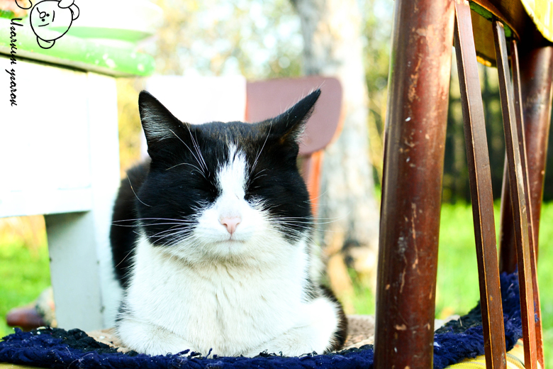 Рядышком с довольным котиком)