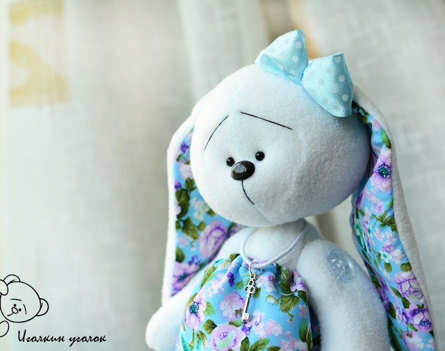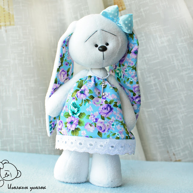 Зайку Элли я шила на заказ. Но вдруг, когда она была уже наполовину готова, заказчица от неё отказалась - она перепутала даты и зайка нужна была ей гораздо раньше, я бы успела сшить, но она бы не успела доехать.