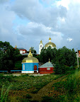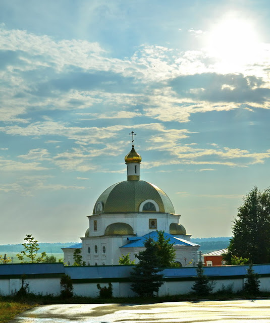 The republic of Mordovia, Turgenevo village, the Kazan spring male hermitage. We visited not the male hermitage, of course, but the holy spring. Here is the hermitage on the picture - big... Consists of several buildings with plastic windows)) I thought is was a monastery... No, a hermitage) That's our little car. And my Mum sitting in the car. And my son hopping around))