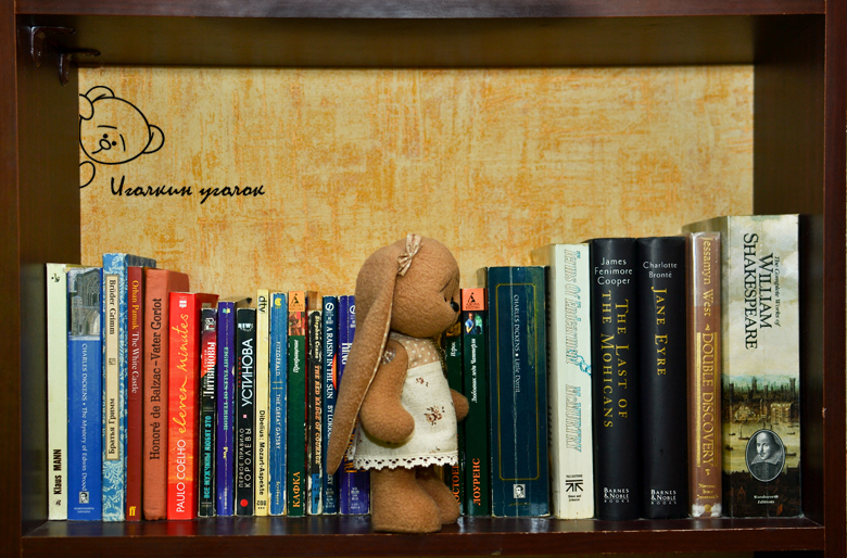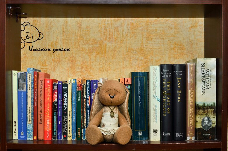 6. Какая Зайка!!! Как живая)))... Сразу представилось... Живет-поживает маленькая Зайка на Книжной Полке. По ночам, когда все спят, она читает... Сказки Братьев Гримм, "Джен Эйр", ахх..., как интересно! Ночи пролетают незаметно))). Но самая большая и, наверняка, самая интересная книга еще не прочитана. Скорее бы все улеглись спать!)))