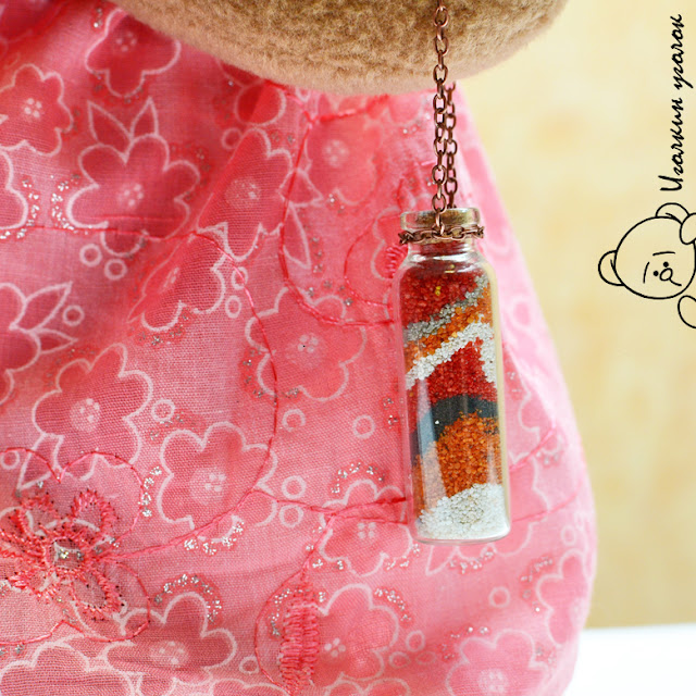 Красииивая)))... Цвет платья сочный, вкусный. Бутылочка с цветным песком - отличная идея. Хороша заюшка! Неудивительно, что новая мама растрогалась))).