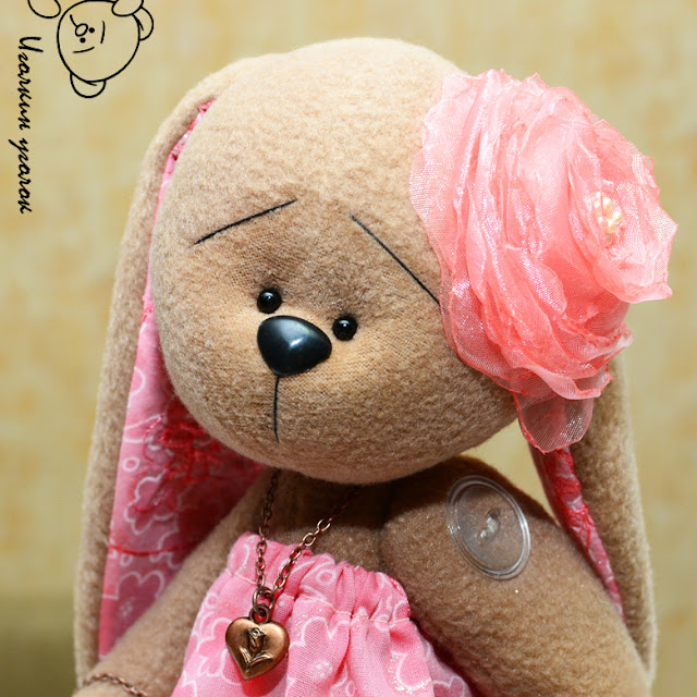 The bunny was made for a girl, Olga, who is a wedding master. The customer, my friend actually, wanted the bunny to be with a microphone and short red hair like Olga's! I refused the hair and promised to think of the microphone.