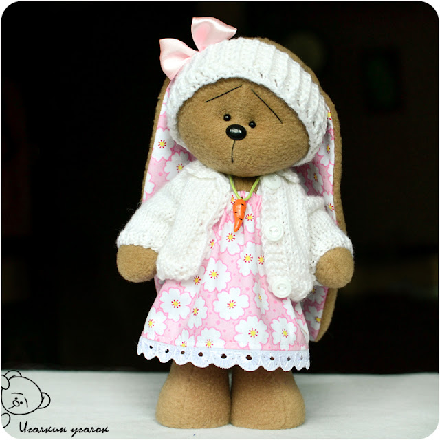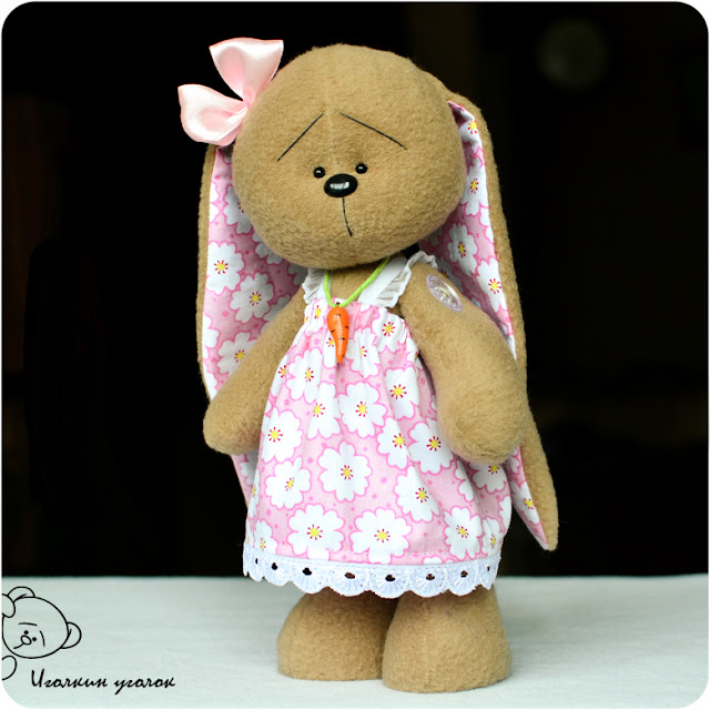 A very good girl and talanted needle-woman Masha gave me the fabric for the dress. By the way in her blog "The Cofferet with Toys" Masha makes bunnies and teddy bears like mine, but crocheted!!! I am like her inspirer! :))) I'm so proud! :)))